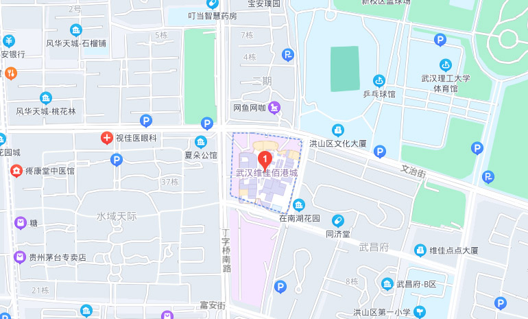 乘地铁2号线至光谷广场站F出口步行约50米即到